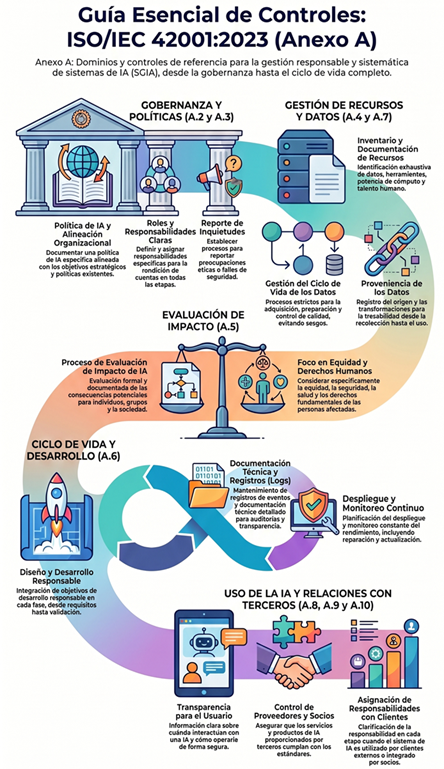 - Con ISO 9001 (Calidad): En la manufactura tradicional, inspeccionas la materia prima antes de usarla. En la IA, los datos son esa materia prima. El control A.7.4 es la evolución del control de calidad de insumos y procesos, garantizando que el servicio final cumpla con las expectativas del cliente.